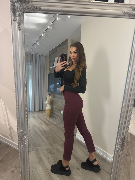 ‘Cabernet' burgundi farmernadrág (Mom fit)