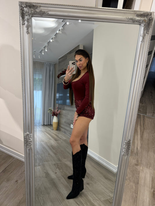 ‘Santa Babe’ flitteres bordó rövidnadrág
