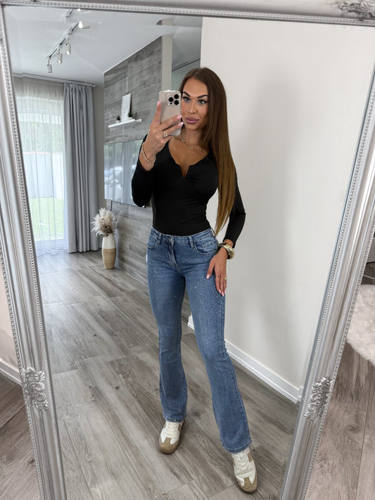 ‘Diana' strasszkövekkel díszített farmernadrág (Wide leg)