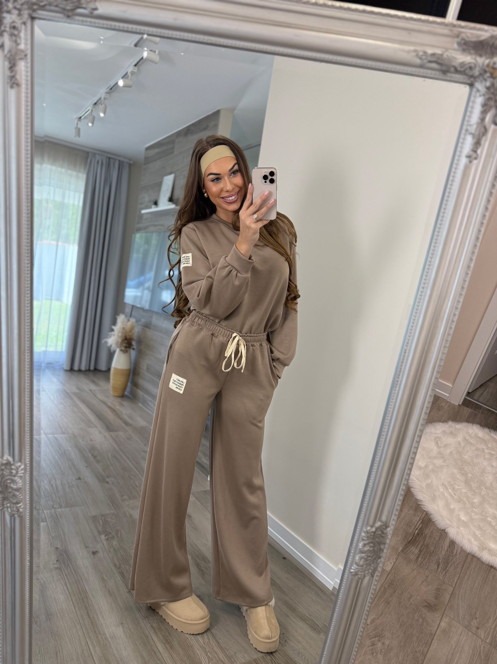 Puha szabadidő szett. "Life isn't perfect, but your outfit can be" felirattal. Magas derekú, gumis.