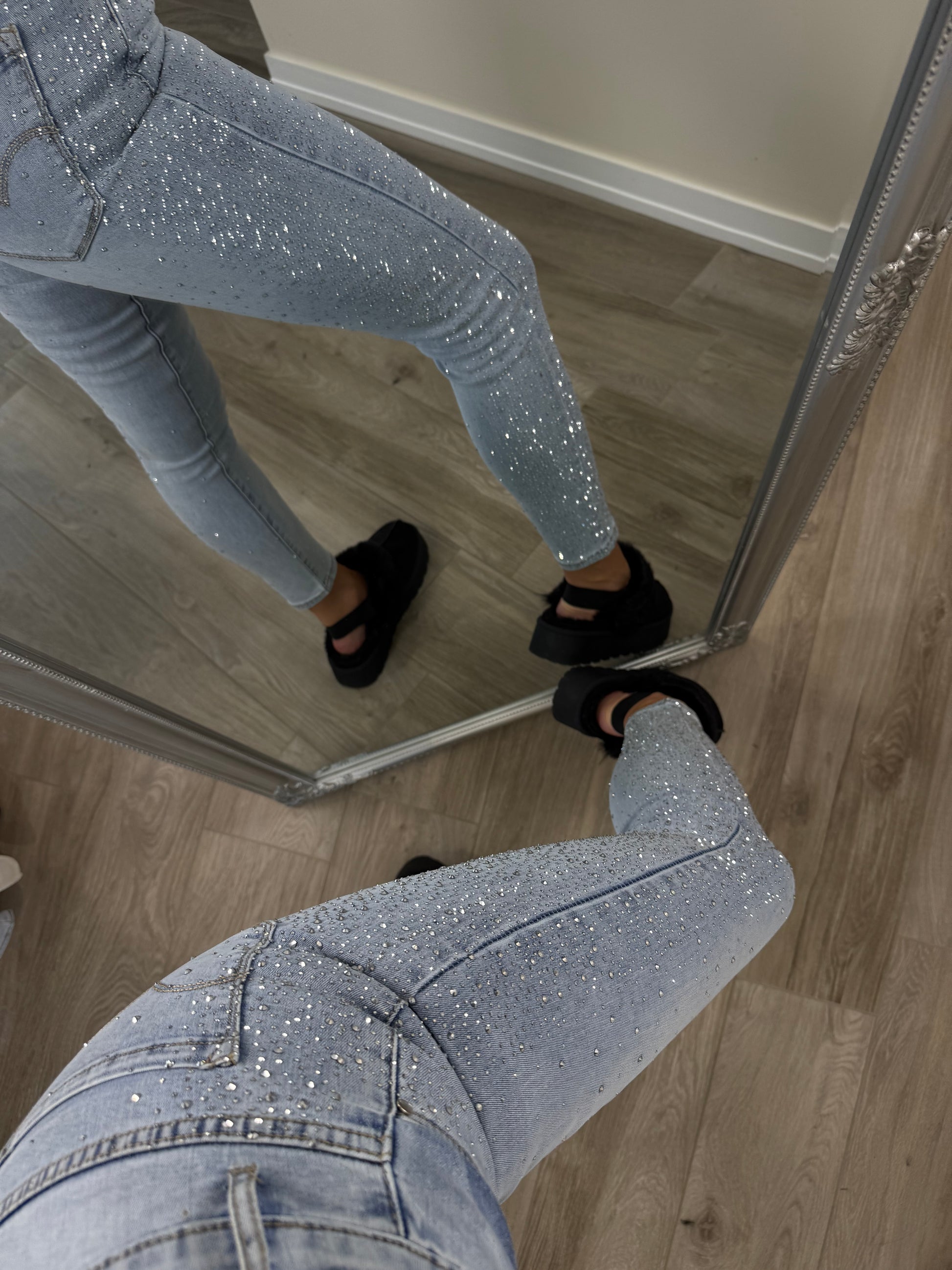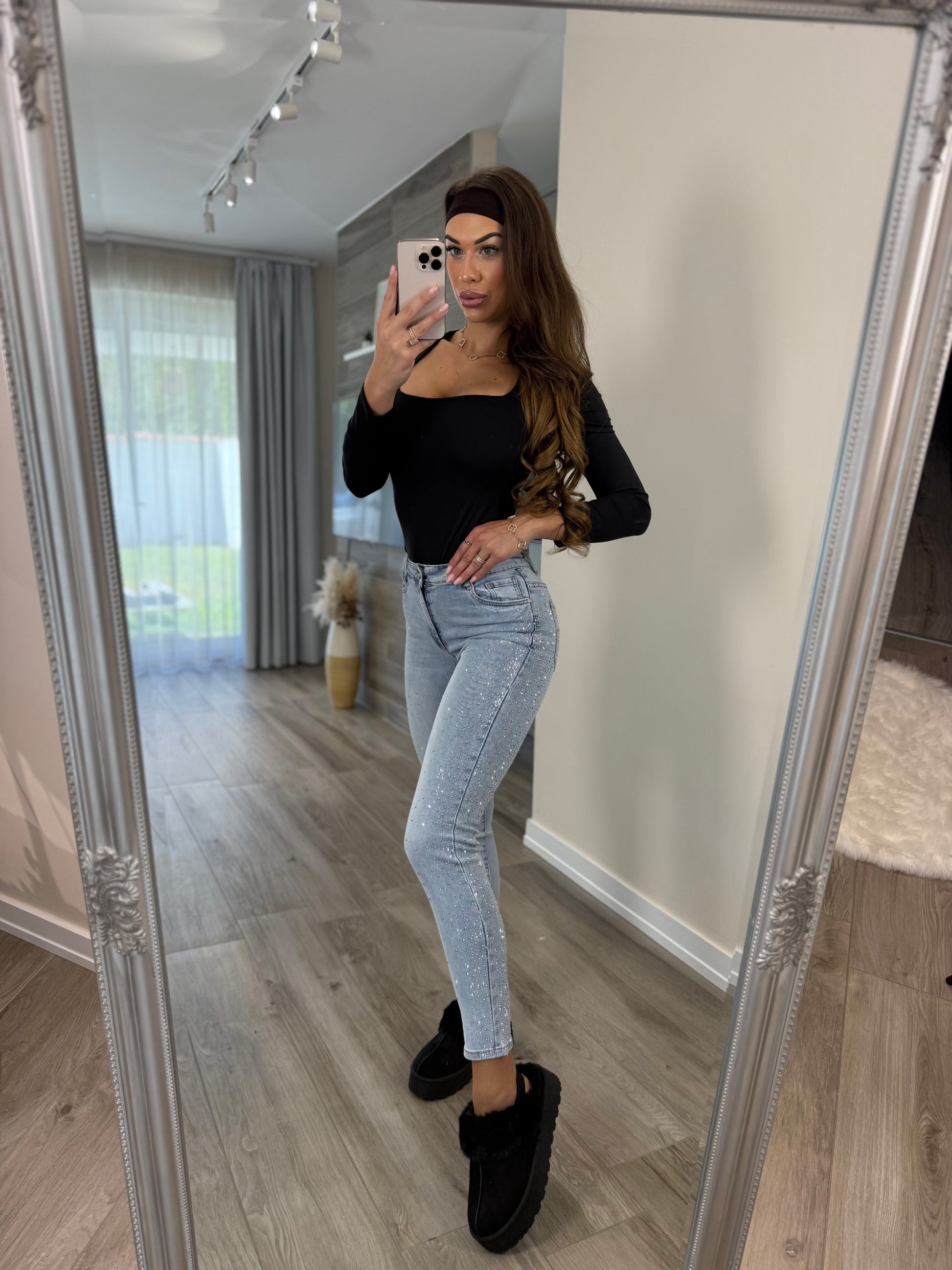 ‘DIORA LIGHT' strasszkövekkel díszített farmernadrág (Mom fit - push up)